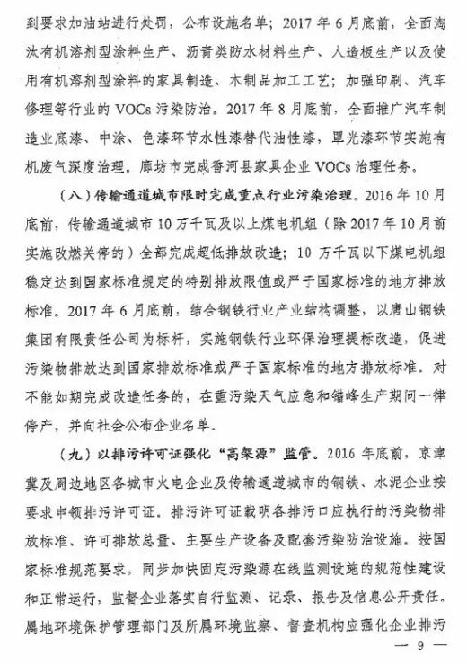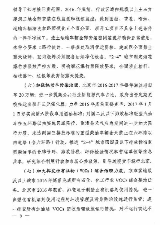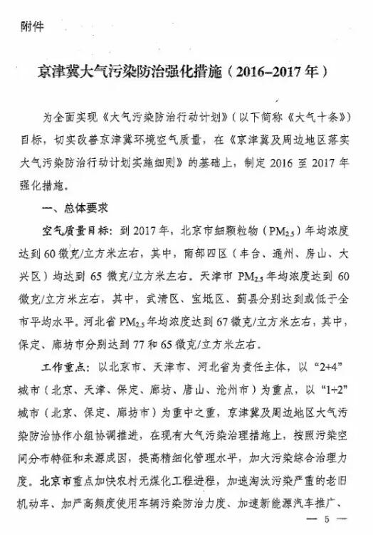 九天供水关注《京津冀大气污染防治强化措施(2016-2017)》发布 重点推进VOCs整治和超低排放